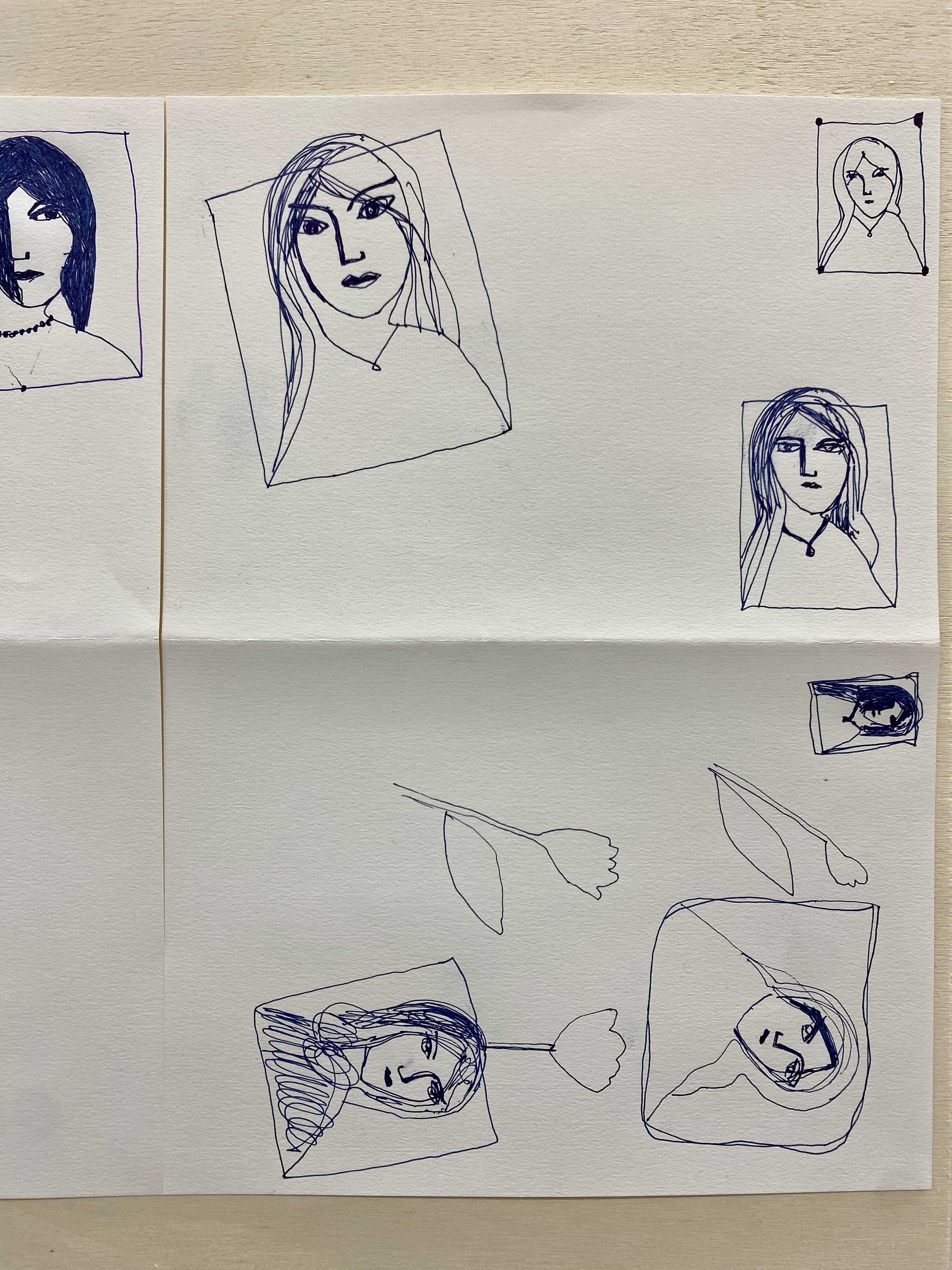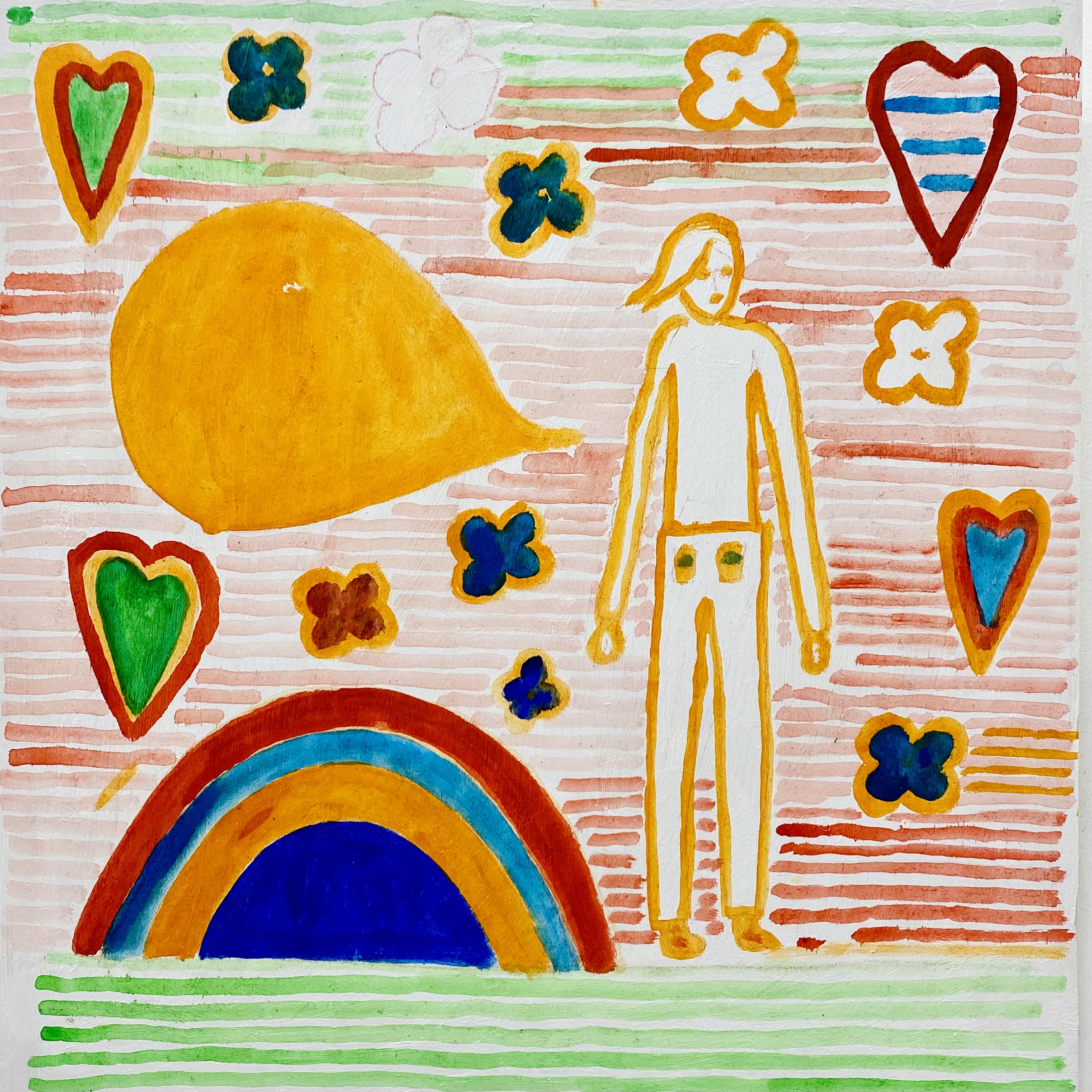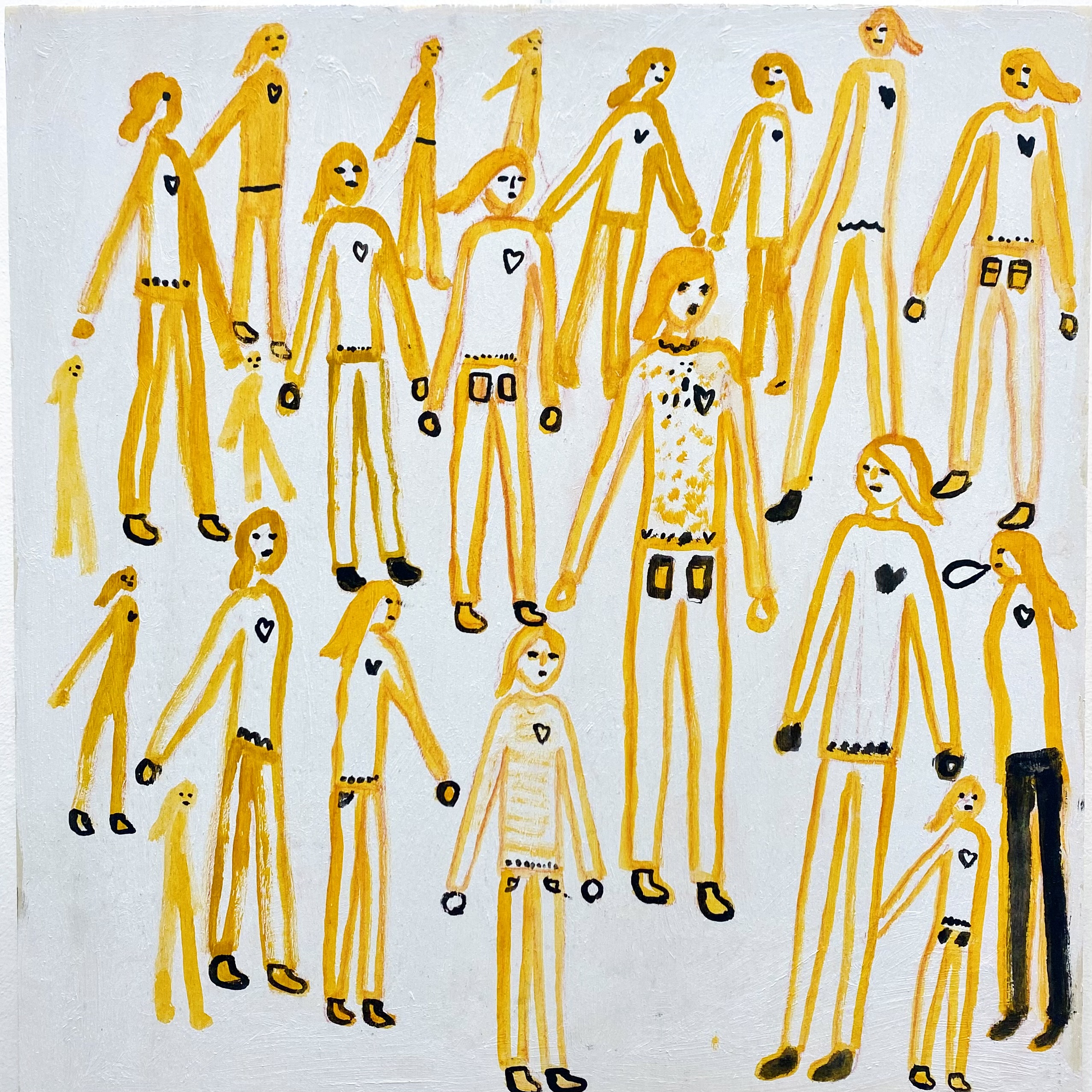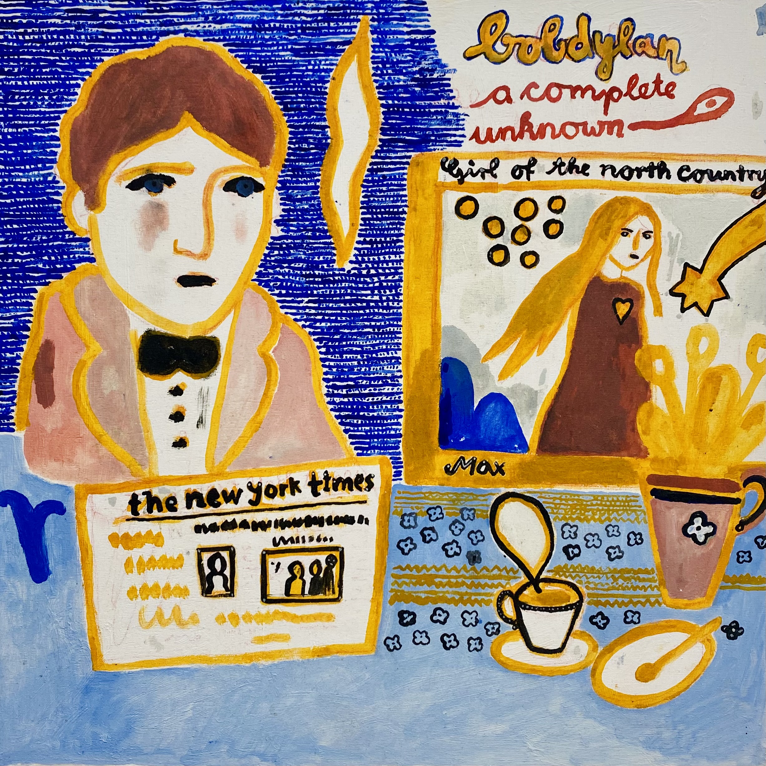 In seiner dritten DURCHFAHRT-Ausstellung zeigte Max rund 20 Arbeiten aus der 2024 begonnenen Reihe von Malereien und Pinselzeichnungen (Öl/Holz) im fast quadratischen Format, ergänzt durch Arbeiten auf Papier und hinter Glas. Die figürlichen Motive erscheinen lebendig - mal wie frei collagiert oder aneinandergereiht, mal räumlich, mal flächig angeordnet, dann wieder als einzelne Figur herausgehoben oder in Landschaftliches oder Ornamentales verwoben.